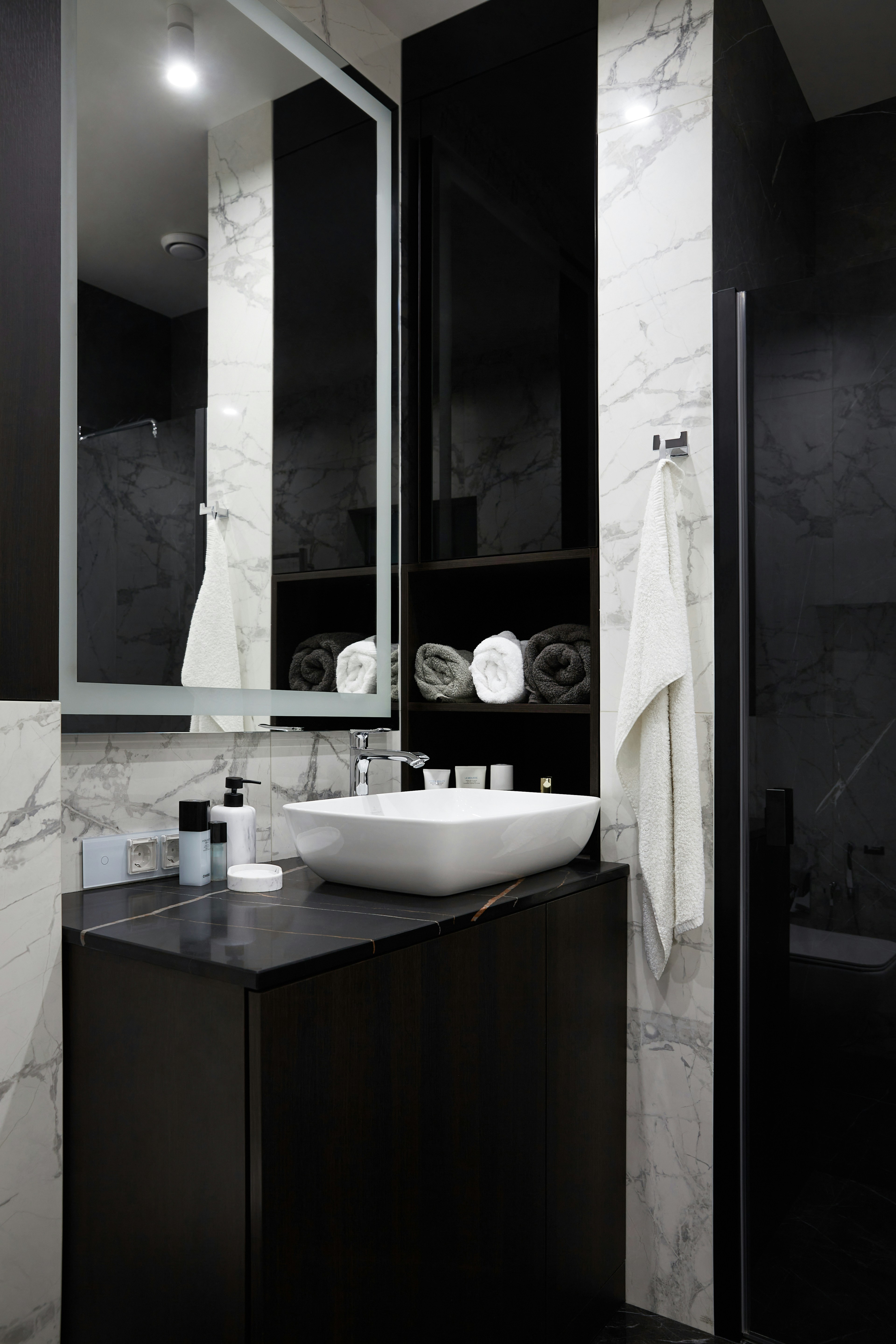 - Deep drawers for toiletries and towels